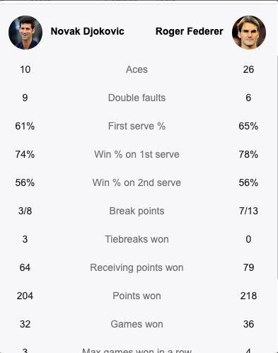 Djokovic e përmendi disa herë, nëse ka diçka që e bën të ndihet krenar dhe i plotësuar është pikërisht fuqia mentale që i ka dhënë aftësinë të fitoj, pike pas pike, garë pas gare. Kjo fuqi mentale besoj duket shumë qartë nga tabela e rezultateve, ku sipas një syri të shpejtë, kupën duhet ta kishte ngritur Federer.